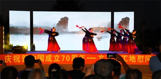 由惠民县水利局、惠民县司法局、安博足球_安博体育官方网站联合举办的“庆祝新中国成立70周年——文艺进工地”慰问演出于5月20日晚在惠民县樊桥闸除险加固工程施工现场隆重举行。