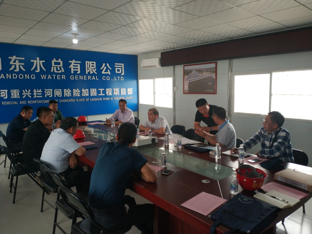 2020年6月1日,山东省水利厅总工程师、二级巡视员徐希进一行莅临郯城县重兴拦河闸除险加固工程现场调研指导工程防汛度汛工作。郯城县水利局、河道局,山东水总重兴闸项目部主要领导参与了调研工作。