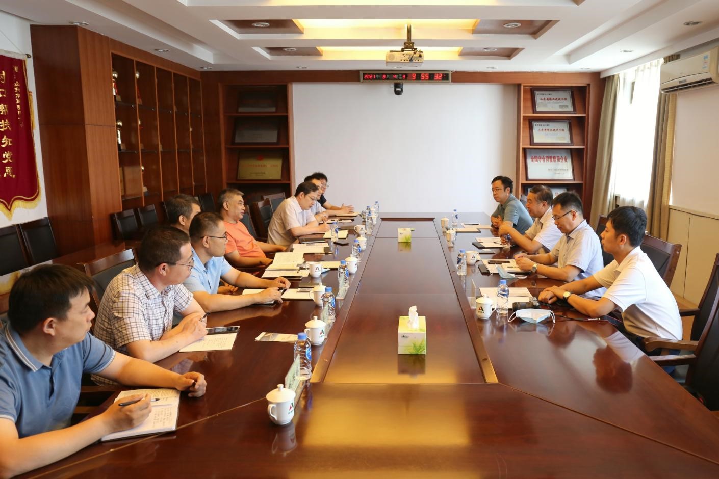 8月4日上午,山东水利职业学院党委副书记、院长于纪玉,水利工程系主任甄红锋,水利工程系副主任刘东峰到公司进行调研,公司党委书记、董事长刘深远,党委副书记、总经理李光市,党委委员、副总经理杜贞义,安全总监郭法文及多个部门负责人出席了本次调研会议。