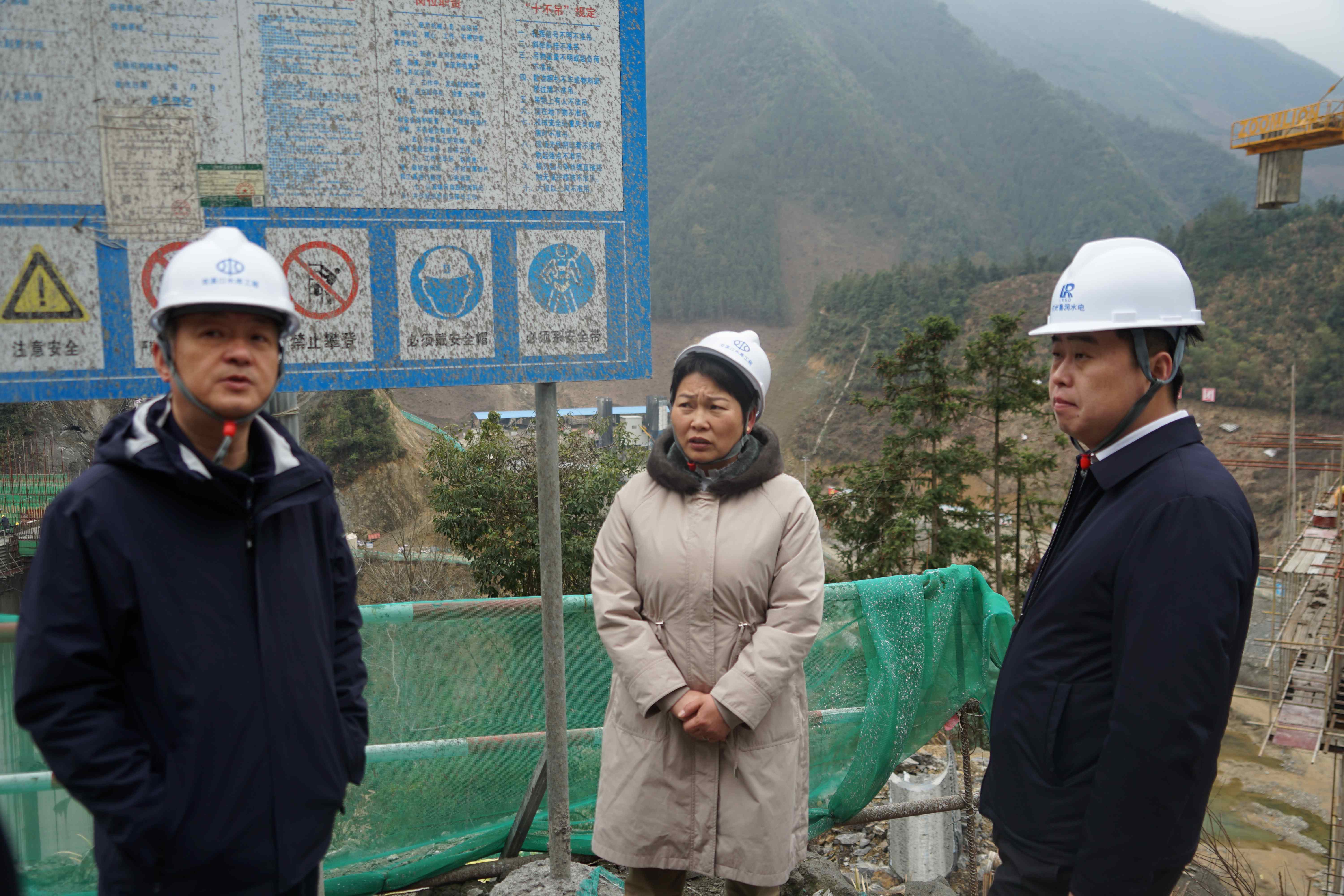 2月25日,临安区副区长罗爱芬带队赴双溪口水库工程开展汛前检查暨“三服务”活动,区水利水电局、清凉峰镇政府、杭州鲁润公司、第六分公司相关负责人陪同。