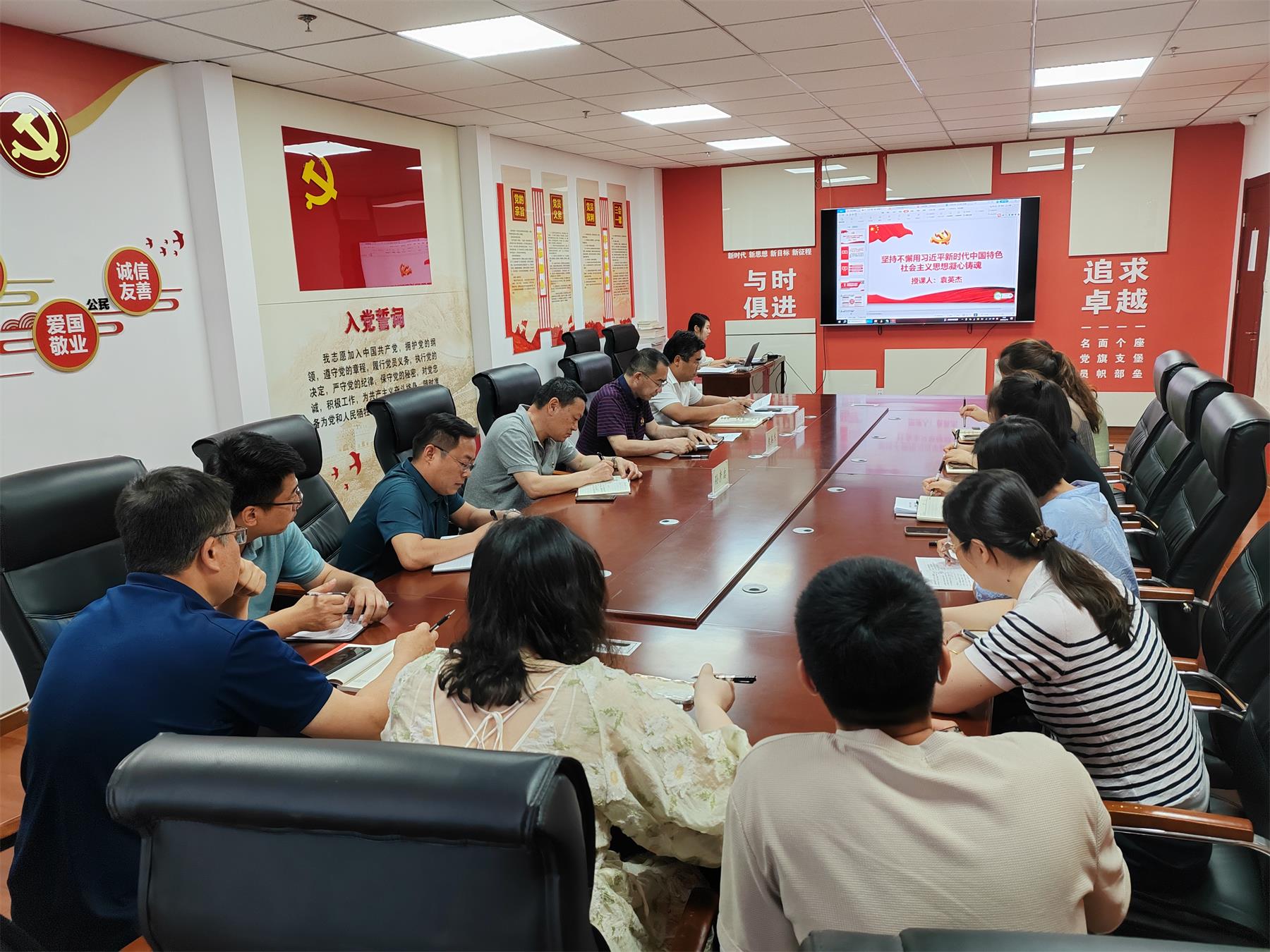 袁英杰以《坚持不懈用习近平新时代中国特色社会主义思想凝心铸魂》为题,结合公司实际,围绕“习近平新时代中国特色社会主义思想为新时代伟大变革所证明的科学理论”等三个方面进行了全面阐述。袁英杰指出全体党员干部要在持续学懂弄通做实习近平新时代中国特色社会主义思想上下功夫,学习掌握习近平总书记的思想方法、领导方法、工作方法,不断提升政治能力、思维能力、实践能力,凝心聚力、真抓实干,以公司高质量发展的新成效检验主题教育成果。