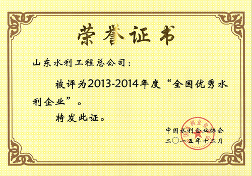 公司荣获2013-2014年度“全国优秀水利企业”