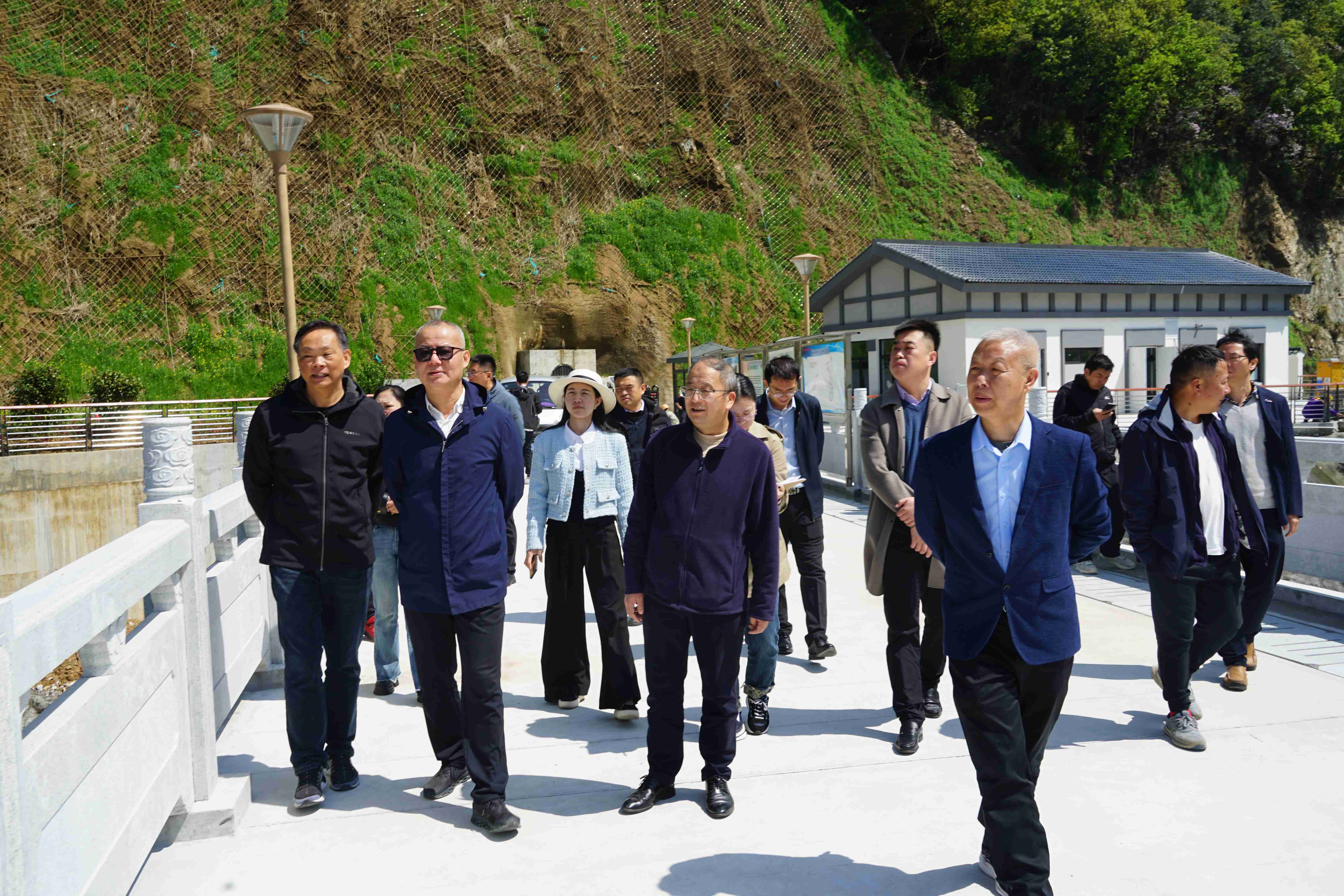 近日,浙江省水土保持监测中心副主任郑城一行到杭州临安区双溪口水库工程进行水保工作调研,临安区水利水电局、区农业农村局、清凉峰镇政府、鲁润公司相关负责人陪同。