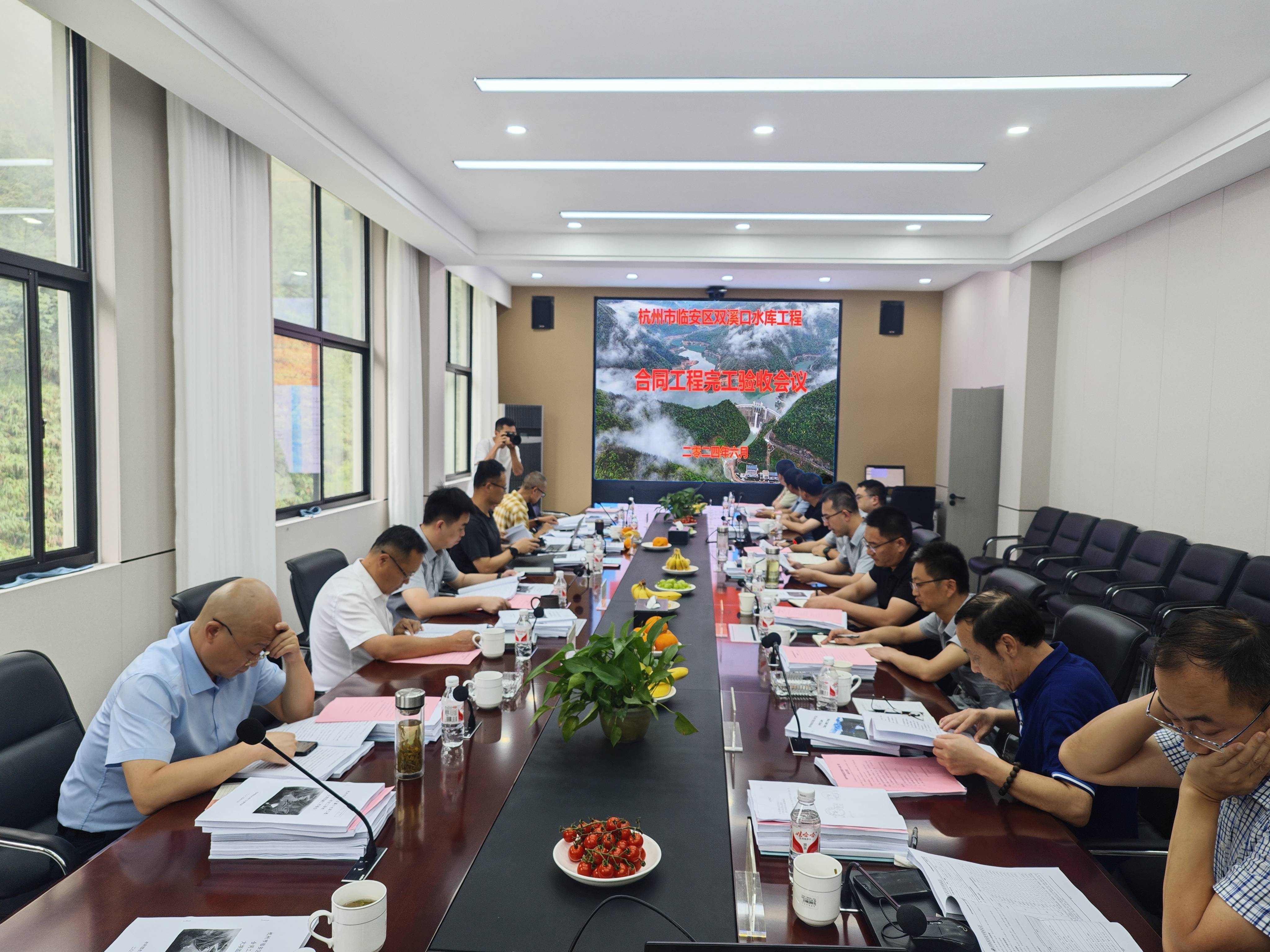 近日,双溪口水库合同工程完工验收会议在水库运营管理中心召开。临安区水利水电局、清凉峰镇、润丰公司(政府股东方)等相关单位负责人及有关专家、各参建单位项目负责人参加会议。