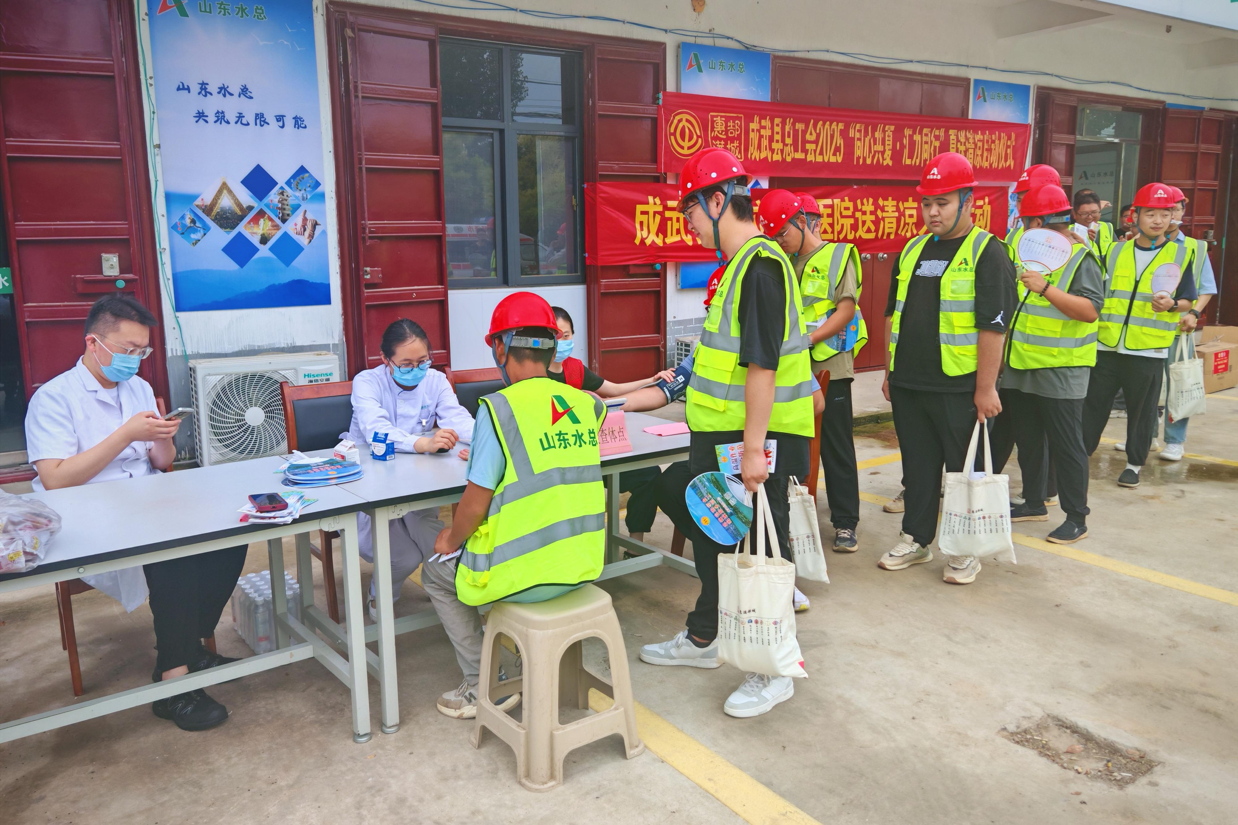 7月23日,菏泽市成武县总工会、成武县公立中医医院一行赴基础有限公司成武县引调水工程项目部,开展“同心共夏 汇力同行”夏送清凉活动,慰问高温下奋战的一线工作人员。
