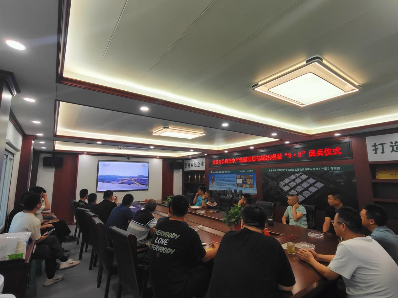 为弘扬爱国主义精神,厚植家国情怀,铭记历史征程,9月3日,第五分公司资中县产业园项目部组织全体员工在会议室集中观看纪念中国人民抗日战争暨世界反法西斯战争胜利八十周年阅兵仪式现场直播。